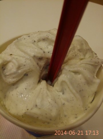 在这个六月的盛夏,我买了一杯加奥利奥的标准杯。结果伊藤的冷气太强劲了,冰激凌差不多才舀了一两勺,我就觉得冷,之后慢慢吃,慢慢耗,吃完一个冰激凌花了我20分钟。冰激凌的口感还是可以,虽然浓郁。但是吃在嘴里感觉清爽,里面加的奥利奥,我原以为会是颗粒比较大的奥利奥渣渣,应该吃着有嘎嘣脆的感觉,结果奥利奥渣渣非常非常小,基本上可以称为粉末,所以完全谈不上什么感觉,只偶尔觉得有巧克力的苦,应该就是奥利奥的味道吧。