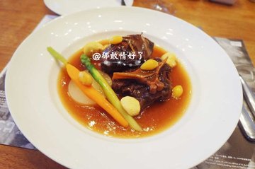 中餐西做不少见,韩餐西做就不多见了。位于颐堤港旁的东隅酒店feast餐厅,时尚酒店里的小清新风格,那天尝到主厨罗伯康宁汉和北京著名韩国料理ssam的主厨兼创始人,韩国美食家Andrew亲手出品的肉食晚宴,韩餐西做,精致美味。四道菜分别是牛舌沙拉配丰水梨及白泡菜及卷心菜,这道沙拉不是主菜胜似主菜,与以往经验的概念沙拉都不同;第二道则是开胃又下饭的牛肚泡菜汤,酸酸辣辣的汤汁,劲道的牛肚,配合喷香的米饭;酱油炖牛尾配板栗,银杏,白萝卜及芦笋,牛尾肉带筋,却轻轻一剔就下来了可见烂的程度,一块儿是带骨牛尾,另一块儿用猪网油包着剔好的牛尾肉;最后一道白薯慕斯蛋糕配梅子柚子冰激凌及糖渍柠檬,淡甜微酸,丰盛一餐完美收官。价格是198+15%服务费。每周五六晚餐有148元一位的半自助烧烤,六日还有198+15%服务费的早午餐,六日晚的无限量单点238元+15%服务费,每月最后一个周五海鲜夜半自助晚餐238+15%服务费,等饕餮美食盛宴,除此之外每周四的汉堡日可以双人同行一人免单,工作日48块钱一位就可以享受丰盛的午餐了,还有每天的日式便当。丰俭由人。查看更多
