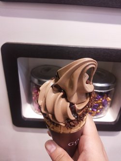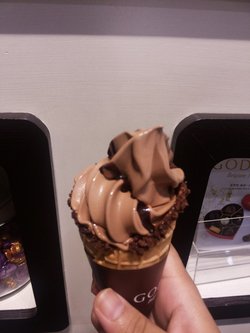 之前有帖子推荐Godiva 的巧克力甜筒,45元一个,算得上土豪甜筒了,首先在卖相而言,确实很好,脆皮周围裹有一圈细细的巧克力碎,上面再滴有几滴巧克力酱,在卖相上就很诱人,然后甜筒的口感确实值得一赞,但是也没有达到那种一吃就难以忘怀的程度,另外甜筒的脆皮很关键啊,这个甜筒下部的蛋筒皮很薄很好吃的说