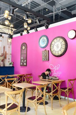 环境超级棒,女孩子最喜欢的甜蜜的调调,门口放了一些蓝白色调的木质家具,周围还有一些颜色淡雅的花花草草,左边的墙面涂成了粉色系的,少女最爱的颜色,上边有各种各样复古的钟,正对面右边就是吧台了。饮品的杯子都特别漂亮,好像是酒吧那些各种各样装鸡尾酒的杯子。水蜜桃乳酪奶昔,很大的一份,一直都偏爱水蜜桃香甜的味道,就点了这个,口感是清清爽爽的,不太甜,装在透明的玻璃瓶子当中,很漂亮,当然口感也是特别出色的。热巧克力上边撒了一层麦片,口感非常醇厚,不腻,很好喝。男闺蜜太妃榛果巧克力慕斯,这个是一定要点的,因为是招牌嘛,外边是巧克力慕斯,摆成了金字塔造型,里边是丝滑的太妃酱,冰冰的口感,还是不错的。…查看更多