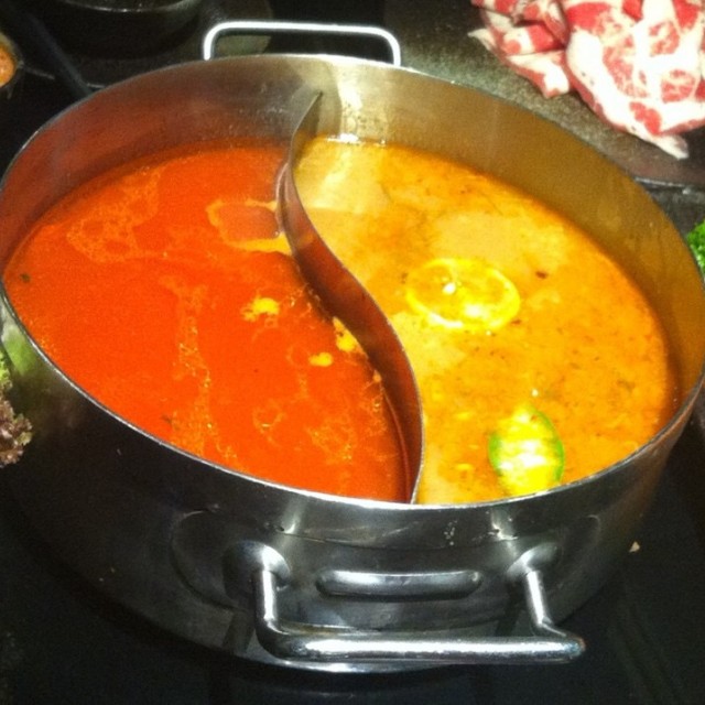 他们家的性价比很高,人均50快就搞定了,泰式冬荫功火锅超正点,里面的汤汁很浓郁,有点微辣,不过一点都不呛口啊,菇类是我的最爱,金针菇很大份,牛肉少了点,不过很好吃啊,土豆很粉糯,差不多两个人完全可以吃到撑哦。