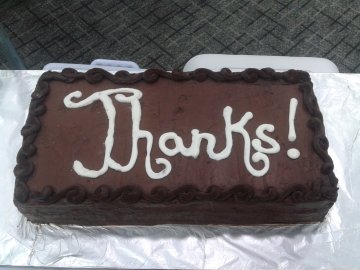蛮早的时候,去做个一次蛋糕,当时为家庭聚餐,感谢会准备的,所以特别写了个Thanks在上面,做成全巧克力的蛋糕,巧克力粉的味道超香呀!里头的蛋糕层也是巧克力口味的,做的时候觉得很赞,后来吃的时候,有些人觉得偏甜了。当时做一个还挺贵的,价钱忘了,是老妈买单的,我没记住,呵呵!工作人员蛮热情的,也会一起帮助。