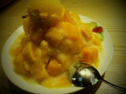 相对于东京街其他比较小的店来说,这家算宽敞的了。超级芒果冰,29米 价格还挺实惠的,那么大的一盘,满的扑出来~ 芒果的味道很浓郁,芒果超多的, 也蛮新鲜~ 最上面有一颗芒果味的冰激凌球,冰激凌一般~下面的沙冰都带有芒果酱的味道,就算吃到后面,都能吃到芒果的味道~…查看更多