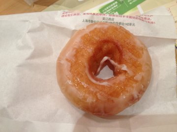 看到DP有免费的圈圈可以吃。。各么就去下载券了。。和DP亲去试吃了一个。。我们拿着券进去。。服务生的脸就不太好看了。。。冷冷的给了我一人一个圈。。。旁边正好有空的座位。。各么我们就坐着吃。。。比Dunkin Donuts松软好吃多了。。。毕竟价格比唐家贵点。。。我吃了一个就觉得很甜了。。看到有亲领了一盒。。呵呵。。如果我自己买的话。。大概也只会买两个尝尝吧。。。毕竟很甜的说减肥大忌啊。。。。希望服务态度有待提高。。。不能因为我们没买东西。。就整天板着脸的说。。
