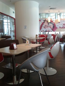 Lavazza Espression Sarahwen等级42012-11-3011 浏览 关注 这家店开在正大广场里面,但是对于美食如云的正大广场,从来就不缺美食,不缺咖啡馆,不缺没有地方吃,也不缺没有情调的地方~所以一家小小的咖啡店实在很难有突破呢~那又是为什么会知道这家店呢,这还得归功于正大广场的会员卡呢~因为之前正好办了他们家的会员卡,而且又逢生日快到了,正好收到他们家的DM,生日当天凭会员卡的身份证可以去lavazza领生日礼,就是一份蛋糕,一杯咖啡~今年的生日又正好是在周日,所以就和BF出来庆祝了~当然,我们的第一站就是去拿正大的生日礼——咖啡+蛋糕啦~话说这个地方还真是不好找啊,我和BF找了好久才找到这家店,店面不算大,风格比较简单,以大红为主,突出温馨和爱的感觉~!简单的沙发座位,简单的格局,一个个小胖沙发,和园桌,非常简约的风格,适合小白领或是商务人士过来喝喝下午茶哦~沙发都是大红色的,非常的温馨,有家的感觉~沙发也很舒服哦,设计的非常符合坐姿,一定很舒服滴~我和BF坐了一会,蛮小资的~桌上的餐巾纸盒,非常特别,桌上上的流线,感觉时间和空间的交错,非常棒哦~看看你想点的东西,很多哦,咖啡,巧克力,奶茶,基本上非常经典的几款都有,没有特别独特的~看,蛋糕好多哦,就是都是非常小的一块块,性价比不高,而且价格也不便宜,感觉如果要我自己来,我估计是不会来的,不划算~门口有很多特色的杯子可以买,蛮好看的~等了一会,我们的东西就准备好啦~咖啡,无功无过,很一般,不过因为免费的,所以就不多加评论了,随便喝喝是可以的~我选了慕斯蛋糕,很小很小的蛋糕,基本两口就没了,还放很大一个盒子,倒是满讲究的~~不过我还是比较看重内涵啦,嘻嘻~…查看更多+ 6以上食记乃用户个人意见 , 并不代表OpenRice之观点。赞好分享Lavazza Espression Lavazza Espression https://s.openrice.com/KtLT100lBe300检举 土屋安娜 感觉和85°C差不多类型。2012-12-03 回应 Sarahwen 恩,感觉一般般,没什么人气2012-12-03 张贴 评分3味道3环境3服务3卫生3抵食推介美食正正正正正正正正正正