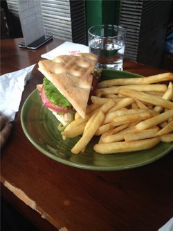 朋友介绍的地方,一起去的总体觉得不惊艳,比较一般吧环境就是美式酒吧的感觉,地方有点小,老外狠毒服务大部分还是比较亲切的,但是有些觉得有些差劲茄子三明治是特色,量挺大,吃完也就彻底饱额薯条味道不错,喜欢番茄酱的味道酒不是很懂,点的Mojita,觉得比较一般总体为了环境,晚上去比较好,热闹查看更多
