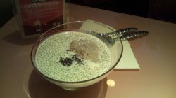 看到网上他们家评价不错,于是也去尝了个鲜。点了推荐产品,紫米香芋西米露20元。甜品装在一个红色的小方碗里面,黑白分明。黑色的一边是名列子和血糯米,名列子很爽滑,血糯米香糯的口感搭配的非常好。白色的一边是香芋和西米,香芋也是很糯的,淡淡的芋香。椰汁味的汤汁很好喝,淡淡的奶香味,不甜腻,很清爽。…查看更多
