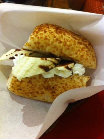 可丽饼~共有12种口味可选择~有水果搭配的,冰淇淋搭配水果的,巧克力,奶油各种组合搭配额选择哪一款都让我纠结了好久呢最后我选择的是什锦草莓冰淇淋口味的~26元里面有奶油~冰淇淋~草莓果酱饼香香的~碰上冰淇淋地渗入,很喜欢~以后再试试其他的味道我还是觉得要带上冰淇淋的可丽饼好吃~…查看更多