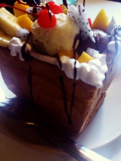 好啦好啦。其实去这家和很多童鞋是一样的目的 ----- 彩虹蛋糕。这个是小亚今年六一儿童节的愿望之一。呵呵,很傻啊。一块蛋糕而已。找了2圈,问了保利的保安菜找到这家隐藏着的loft。一进店整个感觉还不错,有点别有洞天和小清新的感觉。整个店里的装修时走萌系路线,比如大大的长颈鹿,比如说瓷制的象啊,比如说墙壁上色彩斑斓的插画啊。感觉很多彩很绚丽很生机。店里的环境粗略的看还不错,细看就觉得有些糙有些拼凑和不和谐。店里分为两层,楼下空间感比较好,楼上的层高很矮会觉得很压抑,坐着不舒服。还是坐楼下上楼处的卡座比较好。宽敞。这家的菜单做得还不错,最浅显的就是餐点的配图照片拍得多漂亮的,看着就觉得每一款都想试试。小亚去的当天正好上新品,所以有专业的摄影师在一个角落调光拍照,看来这个是用了心的。点餐。【香蕉班戢】26元这个是小高点的。因为他喜欢吃香蕉,在不挑嘴的他看来香蕉味是一切味道的首选。这个正巧让小亚开了眼界。第一见到这班戢里面是一条完整的香蕉段的。‘虽然切开后看起来还比较奇特壮观,但是这个似乎让食客觉得有些敷衍呢?我花钱就是为了买一截香蕉,然后裹了奶油,包在糯米皮里面吗?这个真的很让小亚失望啊。香蕉不是很熟,所以口感差了点,也不甜,这外皮也好厚哦。不好吃啊~~~ 不好吃~~~~~【苹果~~~】忘了名字了。反正名字和图片看着蛮不错多诱人的。但是实物一端上来小亚就折服了。这~~~ 卖相也忒差了吧?!这肉色的苹果味液体和图片上翠绿的颜色差了十万八千里啊。味道就是一杯淡淡的苹果味的水。很淡很淡的那种。不值这个价钱啊。亏了。【彩虹蛋糕】28元这个是当天这一餐的重点啊。实物的图形和菜单上的不一样了。照片上的更可爱点。彩虹蛋糕是这家的当家主打。但是它真的就只是看着很美,吃起来很平庸。一层一层的五彩缤纷,一层一层的浪漫清新,一层一层的和谐搭配。它用了拍照,欣赏足矣。吃就不要抱太大希望哦。会失望的,亲~!味道那只能是平庸可以形容的。【水果蜜糖吐司】52元因为没吃午餐,所以想用这个来填饱肚子。最后的后果是小亚一个人吃完了这个吐司,小高只说了一句不好吃就玩手机了。小亚秉着节约和不浪费和对它负责任的心态很辛苦的吃完了这个吐司,最后只剩了2片“墙”而已。首先,这个完全没有卖相的蜜糖吐司是小亚见过最最丑的了。极其敷衍。然后就是水果品质不行,猕猴桃片还是硬的。冰淇淋品质也不行。最上面还很恶俗的顶了2颗罐头樱桃。这个吐司本身也就是比较廉价那种,口感很虚,烤了之后不停的掉面粉,然后就是不是焦了就是软趴趴的。反正就是很凑合很拼凑很不行的蜜糖吐司了。其他的小亚就没尝试了。但是看着都多漂亮的。想必也是比较一般吧。但是这家最可取的地方是,菜单上每一款食物的热量都有标注哦。好细心好用心。鼓掌·~~~店员除了不是很热情之外,态度还是可以。嗯~~~ 那就这样吧。最后说一句:彩虹蛋糕看起来真的很没。查看更多