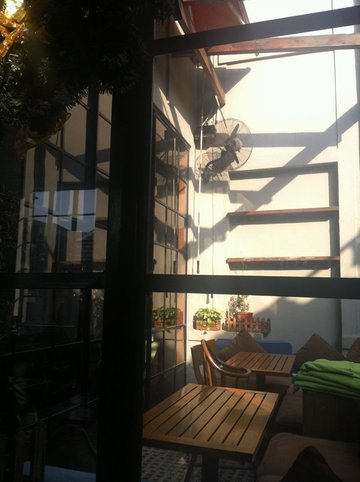 非常有感觉的一家店,和姐妹们经常来光顾,喜欢坐在二楼阳台,晒晒太阳也是很享受的。这家店的饮品五颜六色的,很诱人呢,我尝过几种,味道还行。我最迷恋的是这家的海鲜意大利面。海鲜给得超多的,面很有口感,厨师手艺太好呢!这家的brunch也还不错啦。这种店就是讲究档次,菜单上都用的是英文!