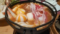 这个店主要是日韩的菜系,那天朋友推荐了一个韩式的火锅其实和我们的火锅差不多,但是他们那放的都是什么泡菜、年糕什么的内容还是蛮丰富的,口味嘛感觉偏咸,也没有中国火锅那种爆辣的感觉但是韩式火锅吃的蛮饱的,什么鸭蛋啊、泡菜啊、年糕啊很占肚子,感觉汤还蛮好喝酸辣酸辣的,十分开胃
