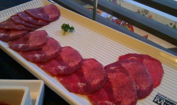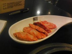 据做餐饮的表妹说这家换了老板,所以不做团购了,不过肉的质量还没变,过年家人聚会,来吃了烤肉。不过说实话这家确实不适合人多,本来烤肉吧就是个忙到人的活儿,而且没几个大桌,好像一共就两个大桌?好在我们人也不多,还是坐下了。团了一个四人餐,又单点了些,元旦的活动是全场75折还8折来着老年痴呆忘记了,不过用团购的话就不能享受这个优惠,呵呵,略不合理,不过忍了,因为本来点的也不多。精品肥牛 红白相间,算是厚实的牛肉,和那种像用来涮火锅的刨卷儿不一样,还不错。秘制梅肉是招牌,自带味道。芥末章鱼,这个很好吃诶,喜欢芥末味儿,这个不会很冲也不会没有味道,章鱼的量还可以。小牛肉和什锦拼盘都正常。黄金糕好硬啊,有黄油的味道,是用黄油烤出来的咩?点了la牛排,还是这个味道最好,就是要把握好火候的说。啊对了团购的套餐里还有个煎饺和金针菇培根卷,金针菇还不错就是太少了一盘,顺便吐槽一下他家的盘子真心巨大,里面的东西越发显得少了= =煎饺是辣白菜馅儿的,还挺好吃。点了芝士鸡腿肉,没有想象的好吃,芝士也没太吃出来,是一块儿的那种要自己加热一下。最后点的肥牛拌饭还不错吃,里面有海苔,中和了一些味道,配上辣酱,辣酱不那么辣,觉得真心不错,可以单点当午饭吃的。人不少啊这店,肉的品质还是不错的,是真的牛肉,哈哈。服务员虽然大妈略多,不过大妈都好会说啊,上水什么的也还及时,大妈不容易。。。…查看更多