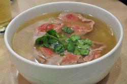 整个店面像阳光房。透过弧形的大扇的落地玻璃窗可以一览外面的景致。不大的地方,座位大部分都是临窗的。正对面的吧台容易让人以为这里是酒吧。桌上的竹篮里放着特色酱料。墙角怒放的兰花和竹篓形的吊灯很让人凉艳。白色的墙上挂着越南风情的小画。虽然小,可是布置得清新休闲。主打越南河粉和各种小吃饮料,品种不少。价格很实在,主食一般在二三十元左。特色越南火车头汤粉(35元):看介绍汤头是用牛骨熬制八小时做成的,没加任何味精。牛肉选自4-5年的天然黑毛小公牛,河粉来自越南。汤真是非常非常鲜,带着浓浓的牛肉香气。河粉很是弹滑。牛肉量挺多的,也是很香。牛肉丸好Q弹。味道是鲜香中带着淡淡的甜和酸。越式炸春卷(32元):春卷皮酥脆,馅很紧实软糯,味道很好。青柠沙沙配越式龙虾片(38元):龙虾片比泰式的厚一些,可是仍然不影响它的酥脆。配的青柠沙沙是点睛之笔,酸甜的味道配合得恰到好处,很好吃。越式香草鸡排三明治(40元):面包非常酥松,烤鸡排嫩而多汁入味,酸甜的酱料解腻增鲜,也很不错。马鞭草茶(15元):喝起来怎么像姜茶,应该暖胃。总体感觉不错,性价比较高的地道越南小吃。查看更多