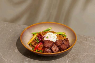 玫瑰盐香煎谷饲肉眼牛排 / 慢烤牛肉芝士皮塔饼 / 野菌鸡肉奶酪披萨 / 战斧牛排佐秘制黑椒汁 / 椰青冰爽柠檬茶 / 斯特罗加诺夫酸奶油牛肉