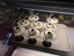 菜品口味只能3星,环境加一星。环境装修很时尚,蓝白色的格调,里面灯光比较暗,情侣吃饭还是蛮适合。沙发坐着很软和,桌子有点小,点的菜最后放不下了,哈哈。。菜品鼓椒蒸排骨,18排骨切的太小了,吃肉简直不过瘾,味道还可以,分量太少了。川味卤猪手,28大概有半只猪手,这个价格确实略贵,配了蘸碟,但是我觉得原味好吃,很糯。深井烧鹅,68等了好久好久才端上来,结果居然是不冷不热的,而且肉质有点绵,非常闷人,有点失败。招牌蒜香骨,48大概有6个肋排,吃起来还蛮香的,推荐窝蛋牛肉焗饭,22太寡淡了,不是焗饭,是砂锅煲饭吧,应该配点拌饭的酱,不然下面的米饭是白味,怎么吃啊?小黄鸭,8适合照相,里面是豆沙,比较大一个。川贝枇杷炖猪肺,12这里的汤都喝的很文雅,用的是喝茶的一套来喝汤,每天的汤都不一样,而且只有汤,其他菜什么里面都没有。还是多香,略微有点咸。黑森林,8当时太饿了,浑沦吞枣就下去了,奶油比较多,喜欢吃奶油的应该会喜欢,不闷,甜度合适。拿破仑,8很小,手掌大小,还是很酥,但是不知道加了什么,味道有点怪怪的。鲜榨猕猴桃汁,35鲜榨的等的有点久,猕猴桃汁用料还是很多,酸酸的很解腻原价还是贵,两个人吃了255,才吃饱。。。服务一般,人不多的情况下,上菜很慢。WiFi信号好,门口免费停车没有人指挥,乱停,导致出去的时候被堵到起,麻烦了一下。…查看更多