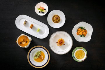 胡麻冰草 / 招牌沙汁大虾球 / 沙汁海胆焗印尼老虎虾 / 日式花菇豆腐煲 / 金牌香酥手撕鸭 / 黑松露海鲜炒饭