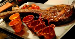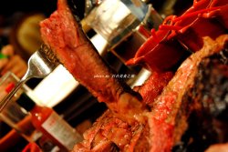 球星真的好帅啊~不过,我来浦东嘉里大酒店主要是为了吃,顺便才围观围观小鲜肉额,哈哈!一直心水The MEAT∙扒餐厅的战斧牛排好久好久,这次听闻又有“三剑客”牛排推出,不淡定了哟,怎么滴也得召集伙伴一起去尝新啦。这家The MEAT∙扒餐厅在嘉里大酒店的二楼,它家最多的装饰元素就是牛角,懂了,进门左手边就是一间醒肉房,里面的肉肉都是贴着时间标签的,大约要二十来天才能拿出来用。餐前是面包和薯片,虽然一直很爱这种薯片的,但尝过它家的面包之后立马移情别恋了呀,不管是长着角脆脆的还是圆润带韧性的,都好喜欢哟,那种自然的带着麦香的口感真好。冰镇海鲜拼盘看着就很赞,这个新鲜度是无可挑剔的,看似小个的牡蛎那口感可真棒,在淡淡的海水味中透着清甜,鳌虾、龙虾、雪蟹脚样样都好吃,忍不住我把龙虾钳也啃了,我好有耐心木有啊,那肉肉结实鲜甜可好吃啦哈哈,哦,我是来吃肉肉滴。两个小推车先后出来啦,哦哦,激动啊,看着都很棒哎,1.8公斤的“三剑客”牛肋排是低温烹调一整天的M3谷饲安格斯牛肉,嫩嫩的口感带有汁水,看似粉粉的略带雪花的肉质入口却感觉不到油花,边缘部分的肉质更香更有幸福感。同样约1.8公斤的战斧牛排是用经过醒肉房21天排酸的澳大利亚5级和牛,用樱桃木烤箱高温烘烤而成,除了和牛的肉香还带有浓浓的樱桃木香味,纹理清晰的肉质比较有嚼劲,满溢的油花和肉肉让人很满足。这边一口,那边一口,告诉你:两种肉肉我都爱!哈哈...吃完了肉肉甜品必须有,它家的棒棒糖冰淇淋、“Knock Me Baby ”冰淇淋都是可爱又美味哈。 …查看更多
