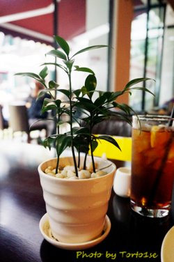 和大学的闺蜜十一相约这里小聚,在比较隐秘的地方。原来门牌号是个大号,里面暗藏了很多店,走进后别有洞天。看到了比较老式的洋房建筑,这家店很小。店里的桌子不多。几乎都是坐室外的。和想象中的又有点不一样,店门前有很大的草坪,但是无人打理,略显凌乱,没有想要拍照的美感。里面走了一圈,有个拉布拉多,被锁在另外一家店里了。懒洋洋地睡着觉,没能放出来玩,略显可惜。 和闺蜜两人本来要坐在室外的木板凳上,但是上面的灰让我实在无法入座。。最后还是选了个店内小一点的座位。。之前微博中了一份小食,可以选一杯饮料和一份色拉或鸡翅。卡片上的色拉已经不再供应,老板帮我们换了其他的。味道一般般吧,啃叶子的赶脚。淡淡的,但是挺爽口。闺蜜点了份大理石芝士蛋糕,味道还不错,芝士味不腻,软硬度适中,是我喜欢的口感。自己要了份红茶----不希望是代泡的,可就是代泡的。朋友点了一份柠檬红茶,挺港式的那种,比我的红茶要好~ 店内总体的环境偏幽暗一点,还有大屏幕在放投影。店里也只有一个走动的服务生,一个吧台。有时候有点忙不过来,点餐买单叫了几次。个人觉得外面的环境是有利条件,还是需要下功夫去打理一下比较好。那样我会对这家店有更好的印象。