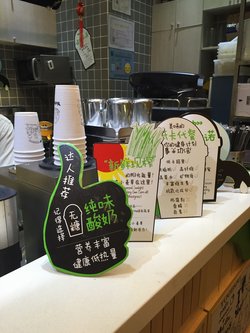 在上海有2家分店,加了微信说是新天地店送20元会员卡,没有独立的店面,是开在底楼大堂里的,店员服务态度不错,没有因为是送的券而态度不好,选择的品种很多,有咖啡,沙冰,果汁,酸奶和蛋糕,价格有点小贵,可能是地段的关系,点了一杯,中杯的19元,芒果味十分浓郁,据说是不添加任何防腐剂的,餐巾纸也很可爱,上面有店家的LOGO.