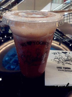 陆续吃了几家闭门羹 搞得不开森就想找一家饮品店 坐坐 喝喝饮料搜索到这家新天地时尚的yoohoo 有团购B1层 和恋暖初茶 是隔壁邻居 外围一圈桌椅团购七选一 实际只能二选一 买都买了 那就喝呗『柚惑红莓露』爱酸的妹纸选的 名字取得好听 感觉红莓籽都混在了里面『桂花南杏雪梨汁』单价居然要22 多重复合口味 有杏仁味 雪梨味 那顶部撒的桂花 有些硬只求坐一会儿 团购还是有性价比的查看更多