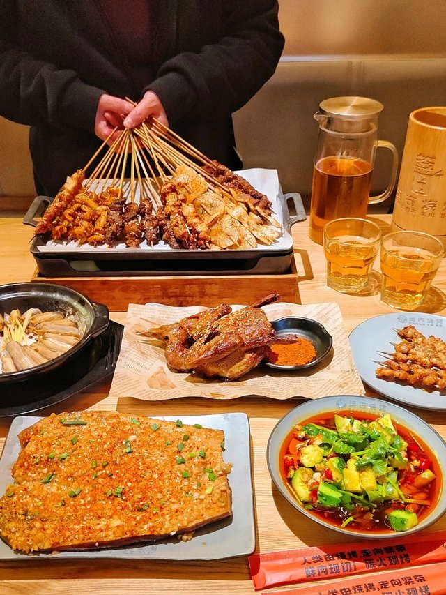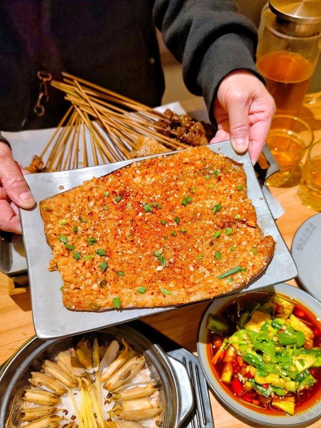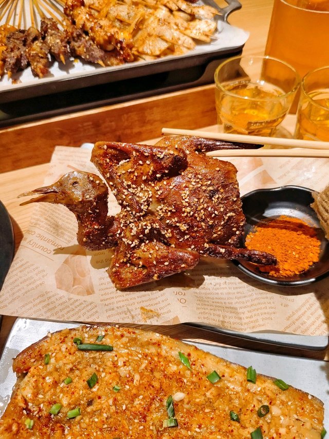這裡的選擇有很多欵,點了王牌雞脆骨、鳳梨雞腿肉串、鮮烤羊肉串、烤奪命泡椒肥腸 、胸口油牛肋肉、杏鮑菇及碳烤土豆片。雞脆骨口感爽脆🤩,羊肉鮮嫰挺香油脂味。感覺特別的是鳳梨雞腿肉串,是個清新有嚼感的組合🤤。肥腸爽脆辣得過癮,牛肋肉鮮嫰。杏鮑菇和碳烤土豆片切得薄,所以較入味的感覺。