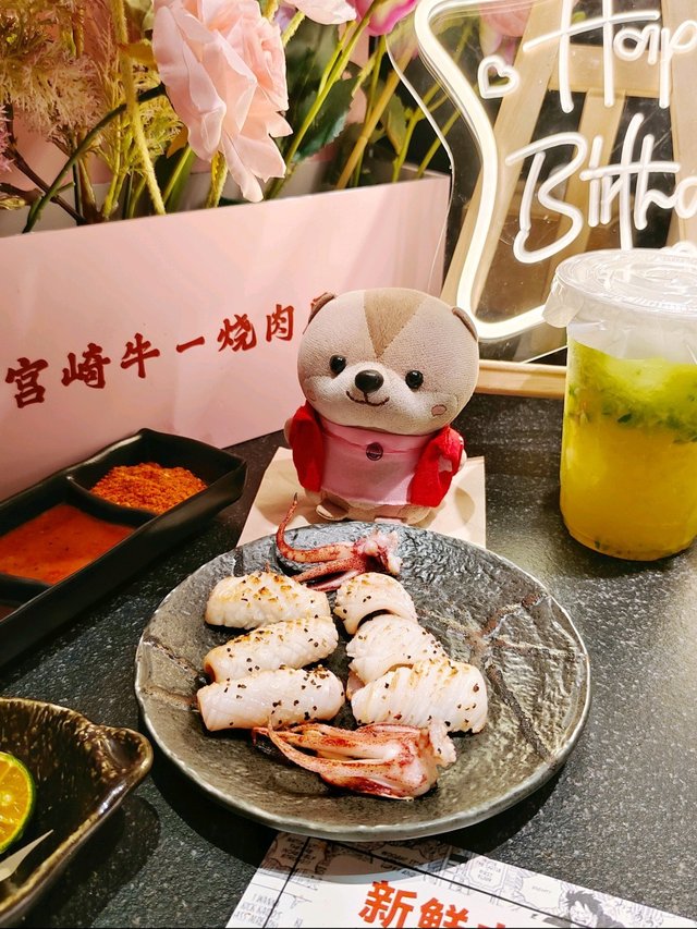 用的是新鮮現殺魷魚,看著慢慢烤熟再切件,不用自己燒就是香。