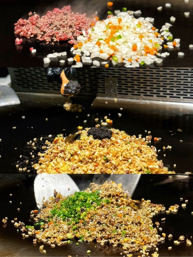 特意選用油泡的黑松露漿,經鐵板高溫炒過粒粒米飯後,依然保留到濃郁黑松露香氣