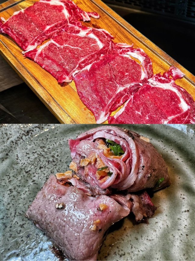 超靚M5牛肉包住新鮮炸好金黃香脆蒜獨子蒜同蔥花薄燒,牛味濃郁夠juicy!