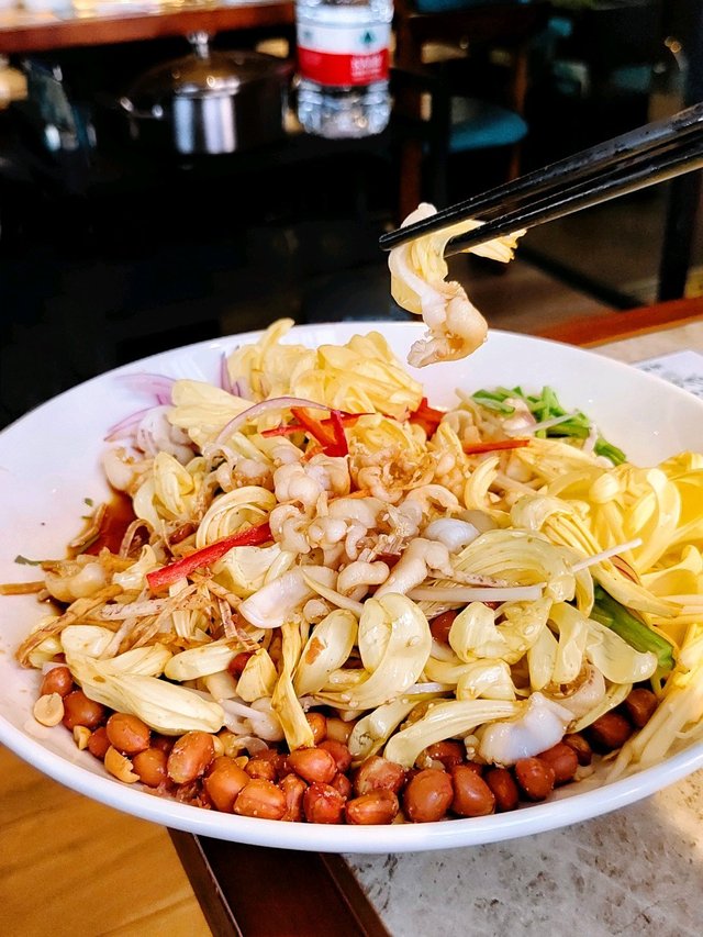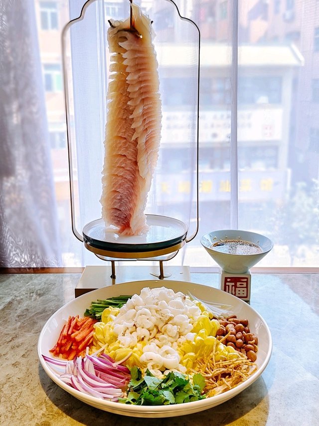 這個是中山版的撈起吧🫢,用了多款顏色鮮豔的食材,圍爽脆鯇魚,金菊是食用級別可放心吃,大大片的金菊味道香甜。先