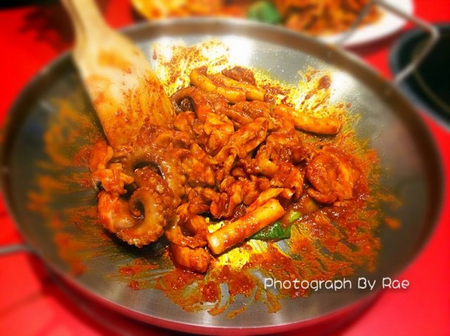服务员会帮我们炒好,可以看到里面的鱿鱼很大块