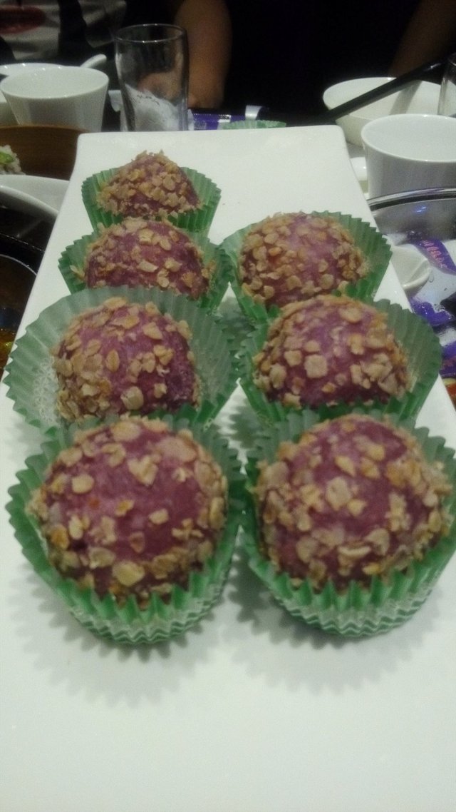 燕麦紫薯球也是有特色的小吃。燕麦和紫薯都是对身体有益的杂粮。