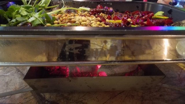 配菜的菜单价是6元一份,秒杀套餐可以选4份,同行的朋友就选了以上几种。配菜是煮熟了以后装进盘子上桌的,放进烤盘里拌着调料加热一下就可以吃。