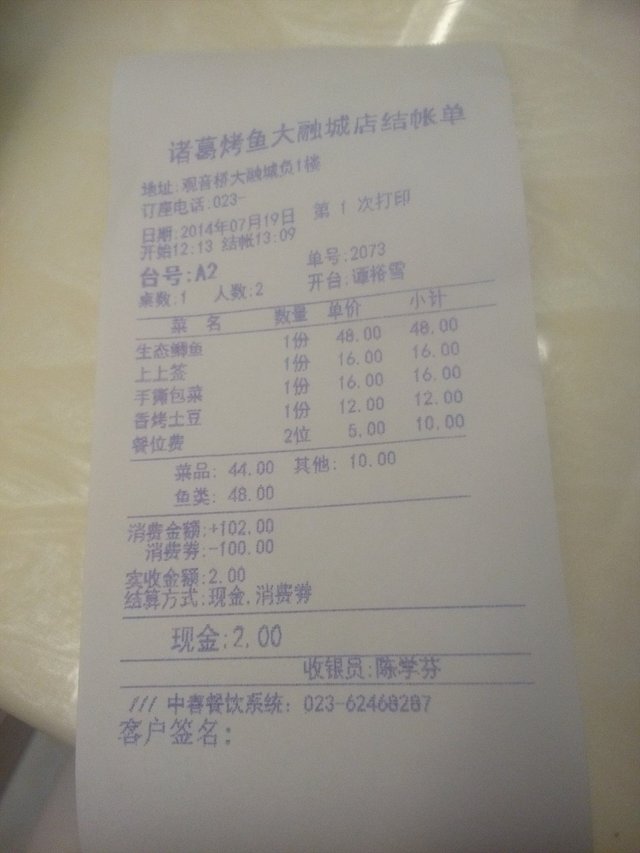 【晒单】注:餐位费是5元一位哦,包括了餐巾,水果和米饭