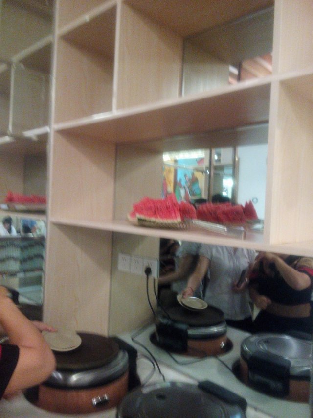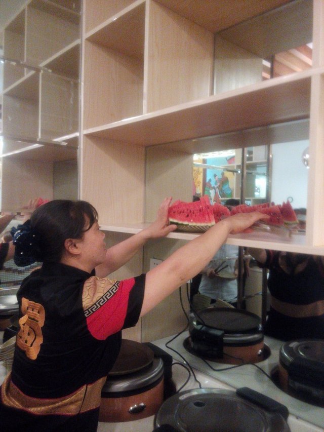 水果米饭是自助,可是水果盘放得太高,工作人员取放都不方便,更何况客人