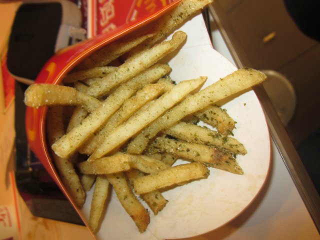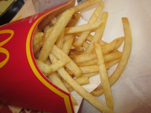 薯条,其实刚炸出来的最好吃了。这个不算新鲜出炉的,中间部分已经有些软了。分量倒还可以,应该是中薯条吧。