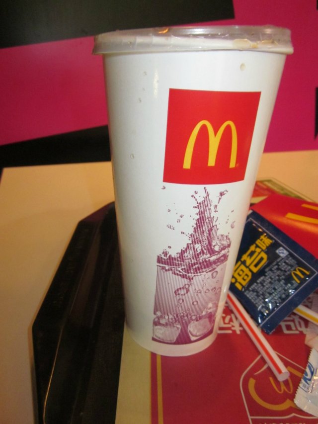 套餐必备的可乐。这个可乐应该是大可乐吧。感觉就是真的很大杯。没有加冰,麦当劳的可乐只要不是过度加水加冰,味道总是ok的。