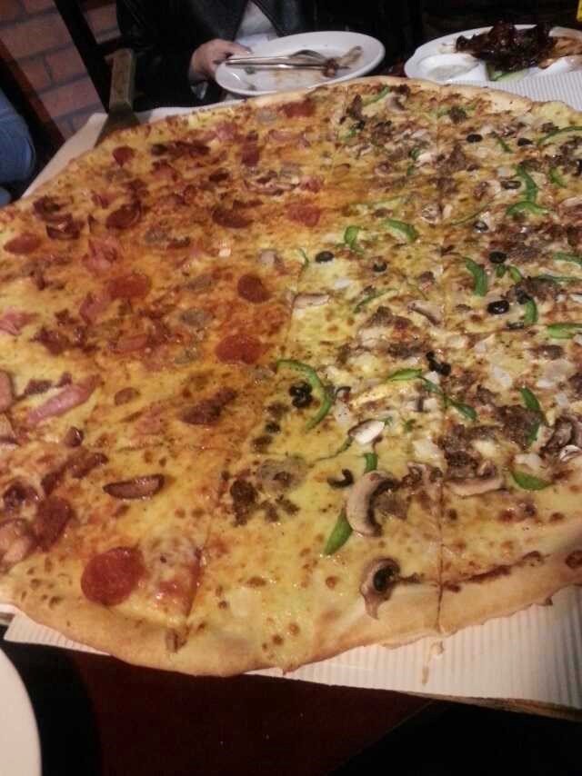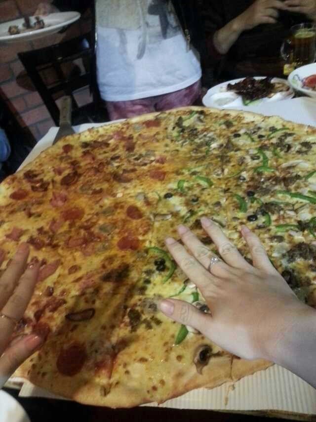 【安】PLAZA PIZZA超大披萨 muse安等级32015-01-207 浏览 关注 广场披萨,挺名字就是很大吧 巨型披萨,去的是华山路的店 凑了9个同事,一起去分享 要了双拼的 果然够大啊 这个该用什么机器烤制I呀 在一个酒吧店一样的地方,还有卖CD什么的手完全盖不住啊!一半是肉食者,一般是火烧牛魔王。大家都更喜欢牛魔王,因为口味更浓一些薯条是经典的芝士培根色拉是田园色拉 味道总体一般 主要是吃个氛围和特色吧!以上食记乃用户个人意见 , 并不代表OpenRice之观点。赞好分享【安】PLAZA PIZZA超大披萨 PLAZA PIZZA https://s.openrice.com/KtLT100udCE00检举 张贴 评分3味道3环境3服务3卫生3抵食用餐途径堂食