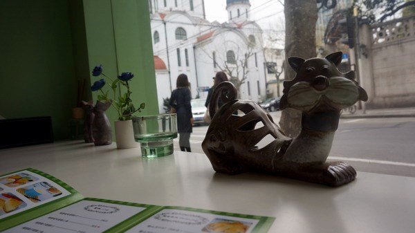 店铺面积不大但是装潢的非常简洁精致。辣妈是个猫奴所以一看到小小吧台上的陶瓷猫猫立马挪不开视线了!