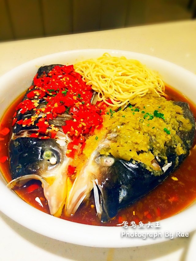 超级巨大的鱼头,盖上剁碎的红椒与山椒