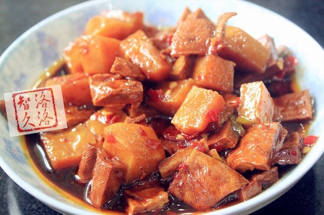 炒醬,是事先就炒好的,端上桌是涼的~只有土豆塊+豆腐幹,不太喜之~