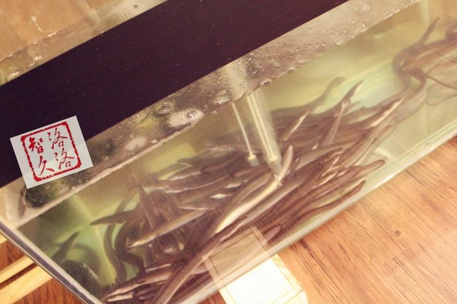 方腿身後滿滿的一缸生龍活虎的鰻魚遊來遊去的~