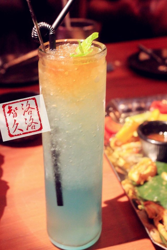 飲料,洛點的是藍色港灣,對於BLUE控而言,很是養眼的雞尾酒,很有特色,色彩絢麗,惹人喜愛,雞尾酒嘛,口感還是有些烈的,當下感覺外出就餐總是無酒不雞的節奏~前世一定是嗜酒之人!
