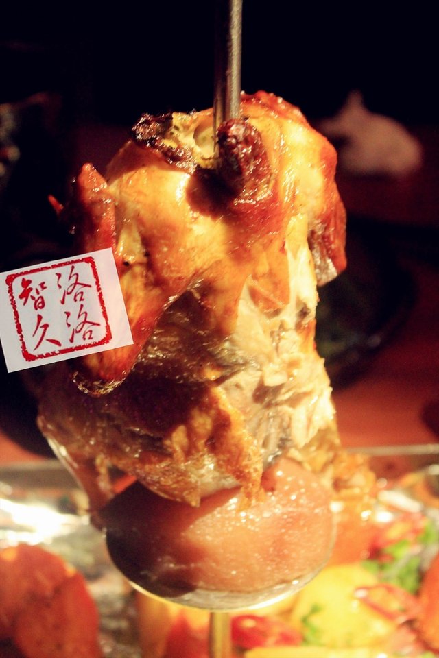 香烤手扒鸡的個頭適中,烤的香氣四溢,徒手撕雞吃很有海盜的魄力!