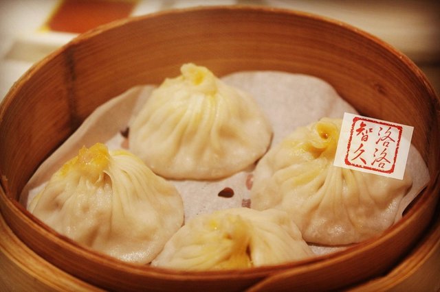蟹粉小籠,48元/例,一份有4只~因為有蟹粉更加鮮腥,湯汁少許~