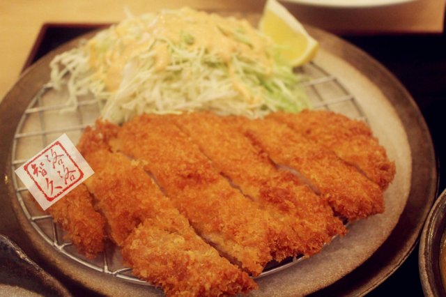 炸豬排很大一塊,炸的香脆的表皮肉質細嫩,很好吃的~