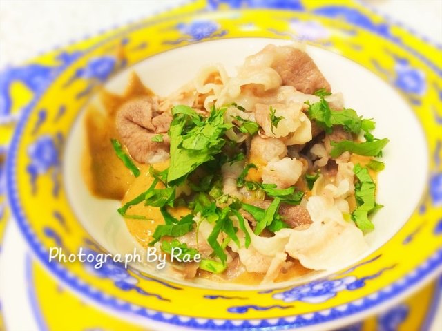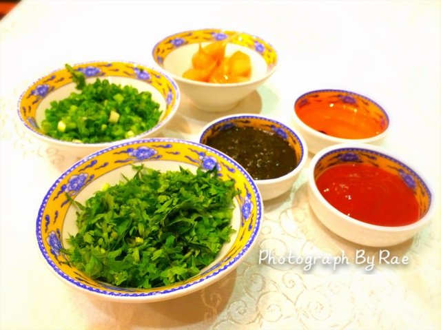 香菜,葱,特制酱,辣油,还有一个忘记是什么了