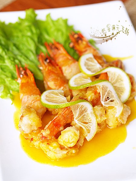 一头头大虾舞动着婀娜的身姿,齐整而卧,开片的柠檬如同优美的五线谱,为虾儿奏起明快的乐章。去壳的虾肉娇嫩清弹,柠檬酱汁的酸甜入味,将虾肉的滋味倍添。