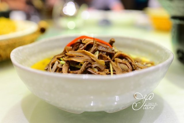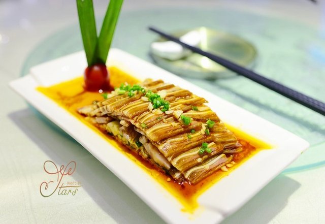 肉冻开切成片,晶莹而又纹理清晰,细看才知是久违的猪耳成就,软骨边的胶质肥厚,嚼起来脆脆的,红油里还飘着浓浓的蒜香,见油却不腻感。