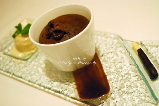 热巧克力souffle配玉桂焦糖冰淇淋:这个这个超好吃的呢。巧克力是那种苦苦的,这种口感我真的是爱死了呢。。