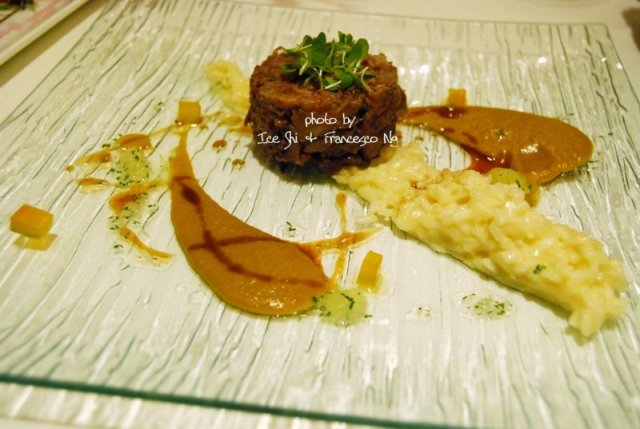纯牛腱配以奶油米饭及西红花果冻:用的部位很好,所以肉质非常非常的鲜嫩多汁。配的米饭让阿奴惊艳了,因为这个米饭是他心心念念的西班牙夹生饭。他可是想了很久呢。这个菜的量也是非常的小啊,这个主食,连我这种小胃口的人都吃不饱呢。